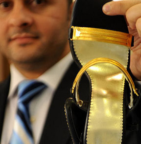 ''Terliğin tabanı dışındaki bölümleri (ayağı tutan 2 kemeri) 14 ayar altından yapıldı. Nişan ya da düğünlerde, evde giyilmek üzere tasarlanmış bir ürün. Şu anda yükselen altın fiyatlarıyla birlikte 6 bin liraya satıyoruz ancak kadınlar sadece seyrediyor. Bu terliklerden 2002 yılında 2 çift vitrine koyduk, biri 2003 yılında satıldı. Müşterimiz olan kadın, evinde giymek üzere aldı. Diğeri 2003 yılından bu yana müşterisini bekliyor. Fiyat biraz yüksek ancak sonuçta altın terlik.''